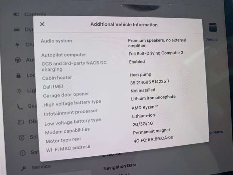 - Smart device app function: camera system display, horn/light operation, lock operation, maintenance scheduling, maintenance status, phone as a key, security event/collision alert, vehicle location, window operation